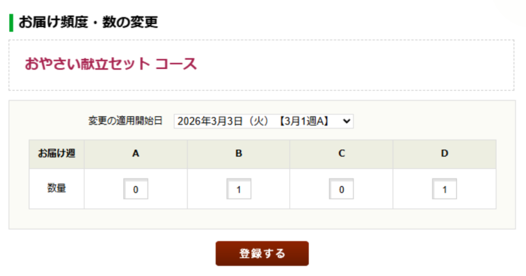 • 配送頻度:月1~4回まで選択可能